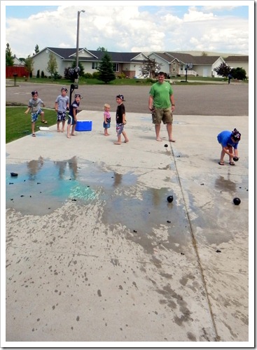 after they had their fill of the water slide we presented owen and his friends with their first clue to a treasure hunt.